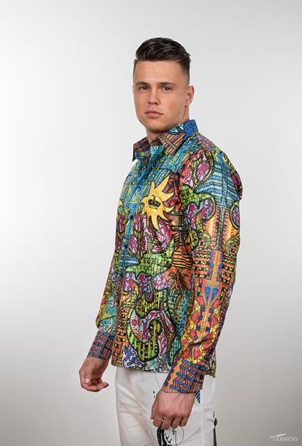 GERMENS Hemd "King Bansah" ist ein ganz besonderes Kleidungsstück. Der Künstler Gregor-T. Kozik zeichnete das Dessin in einer Anmutung auf ghanatypische Farben und Muster.